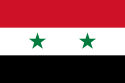 Flags of the Syrian government, Rojava/Federation of Northern Syria, the Syrian opposition, and the Islamic State of Iraq and al-Sham