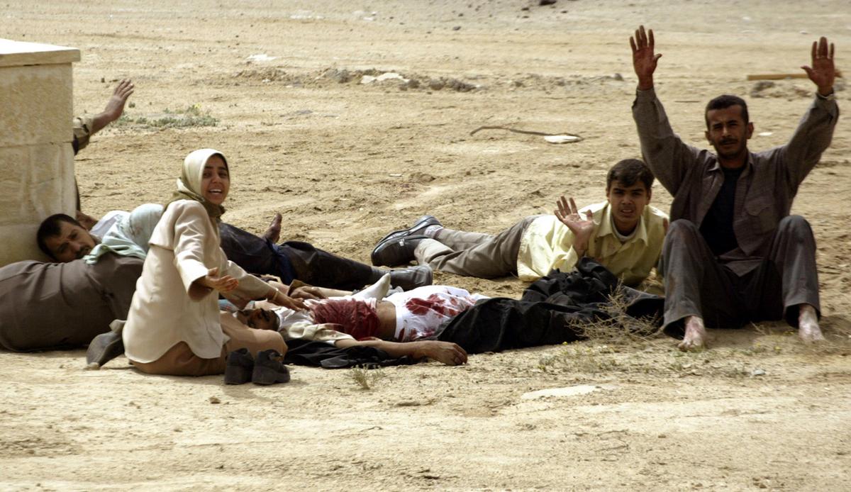 | Iraqis attempting to surrender to Coalition forces after the soldiers fired on them |