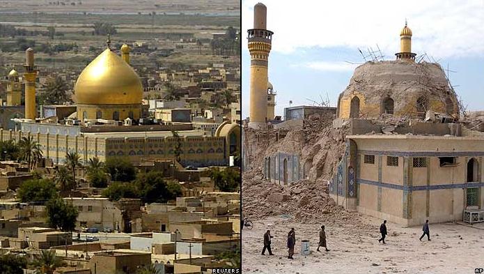 | al-Askari Mosque before and after the al Qaeda bombing |