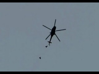 barrel bombs, crude anti-personnel munitions consisting of a metal barrel of some kind filled with shrapnel and an explosive of some kind, then attached to a helicopter or